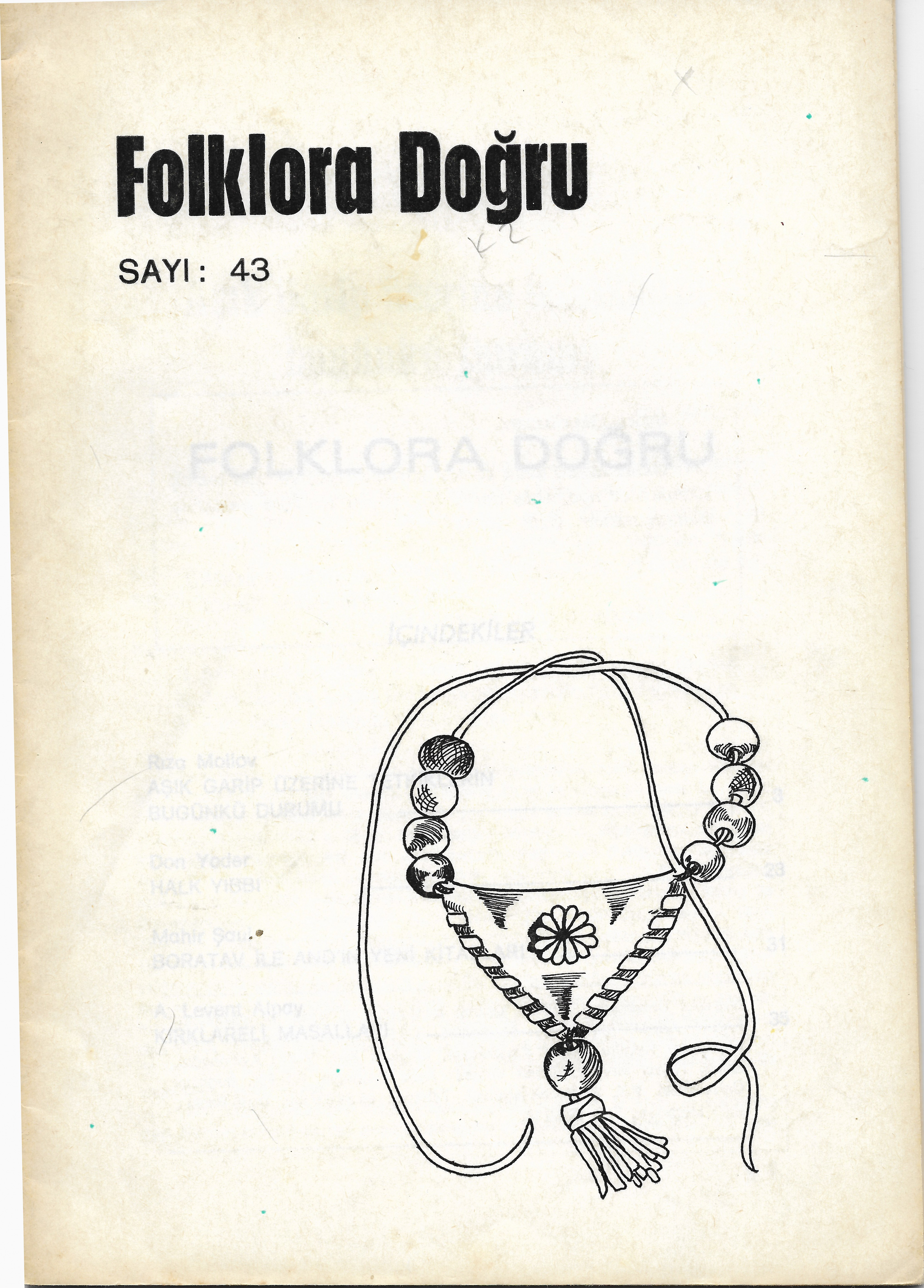 * Dergi Adı: Folklora Doğru * Basım Tarihi: Kasım-Aralık 1975 * Sayı: 43 * Arşivimizde Mevcut Mu? : Var |