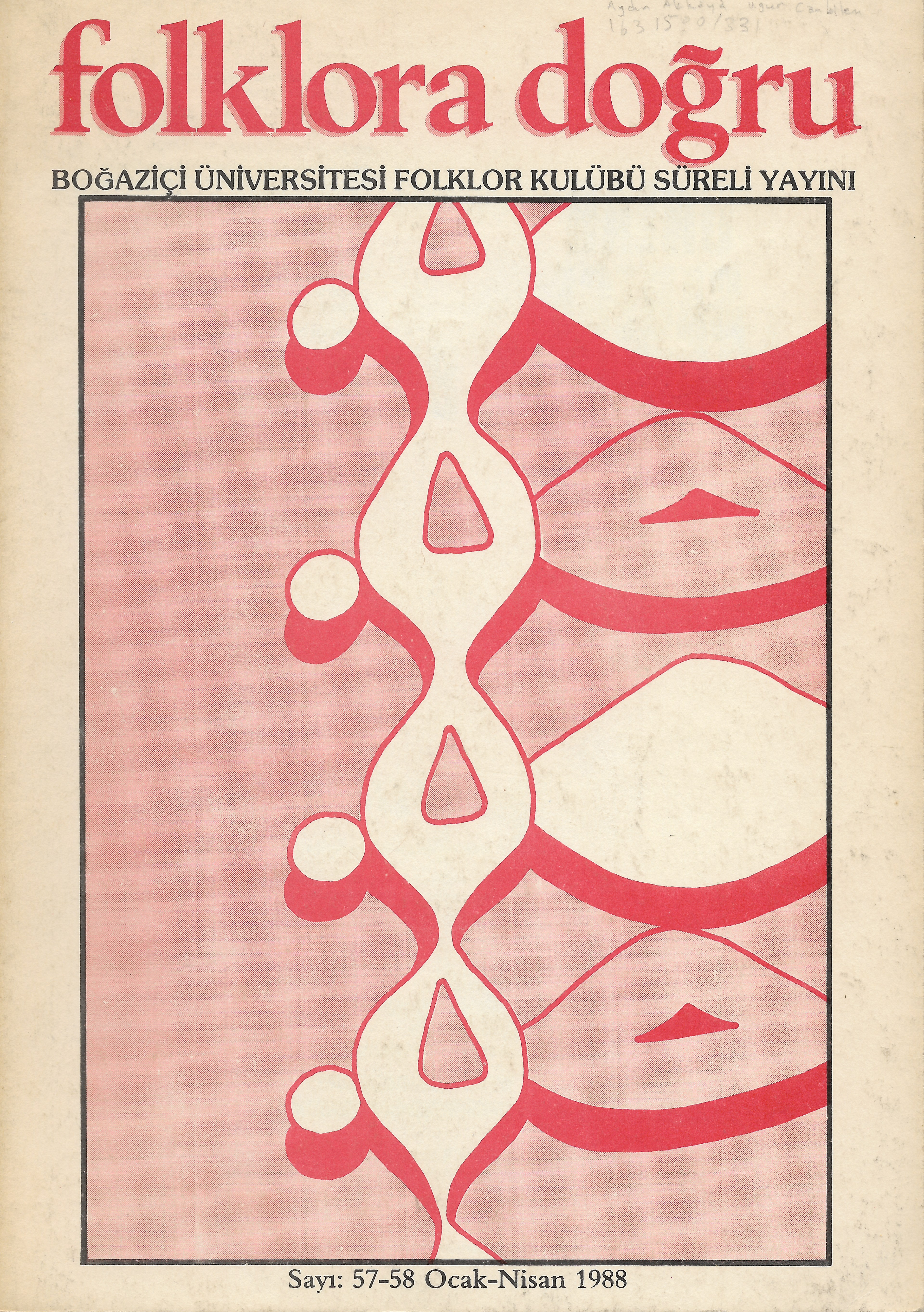* Dergi Adı: Folklora Doğru * Basım Tarihi: Ocak-Nisan 1988 * Cilt: 6 * Yıl: 19 * Sayı: 57-58 * Arşivimizde Mevcut Mu? : Var |