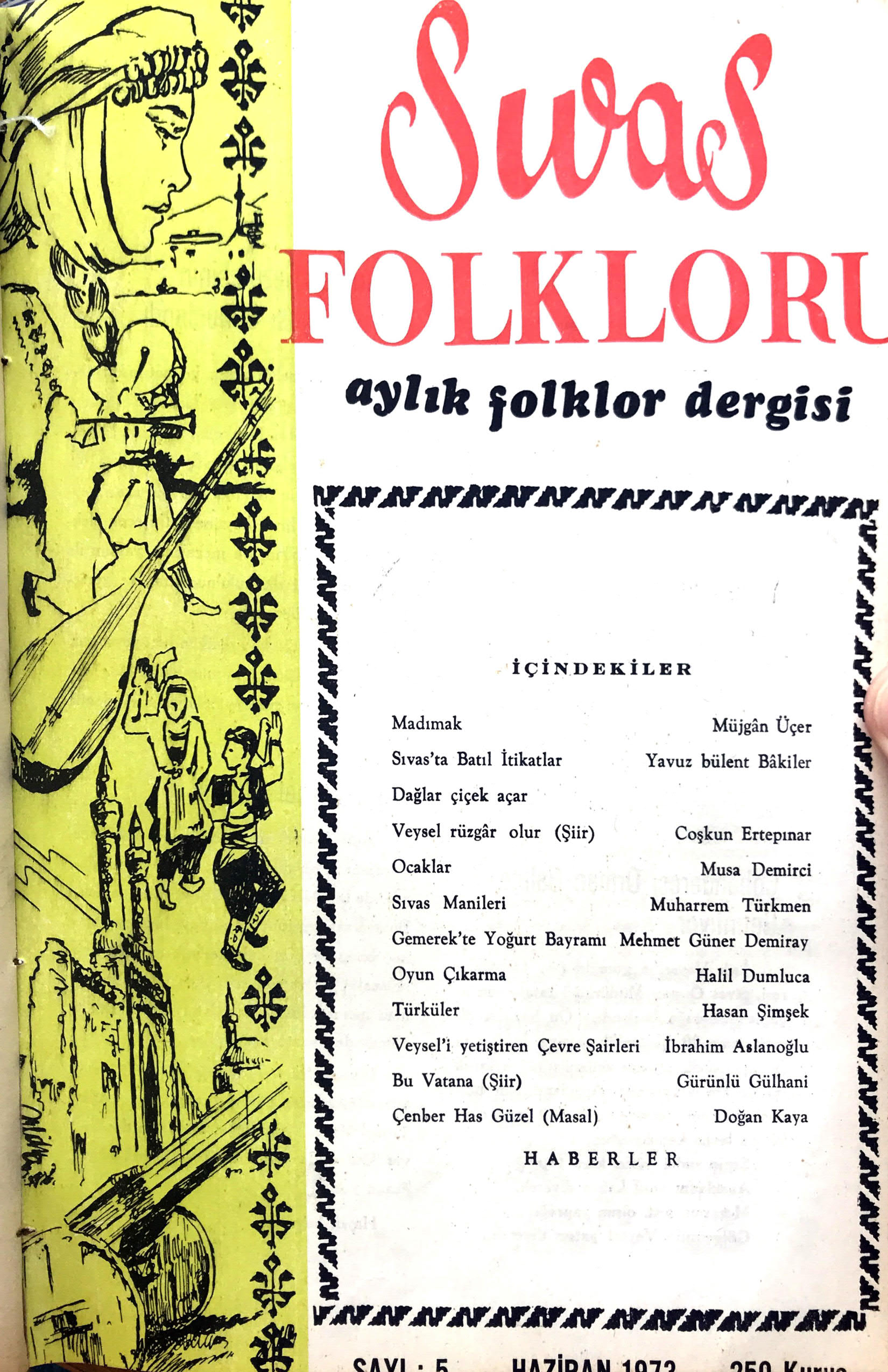 * Dergi Adı: Sivas Folkloru * Basım Tarihi: Haziran 1973 * Yıl: 1 * Sayı: 5 * Fiyat: 250 Kuruş * Derginin Sloganı: Aylık Folklor Dergisi * Arşivimizde Mevcut Mu? : Yok |