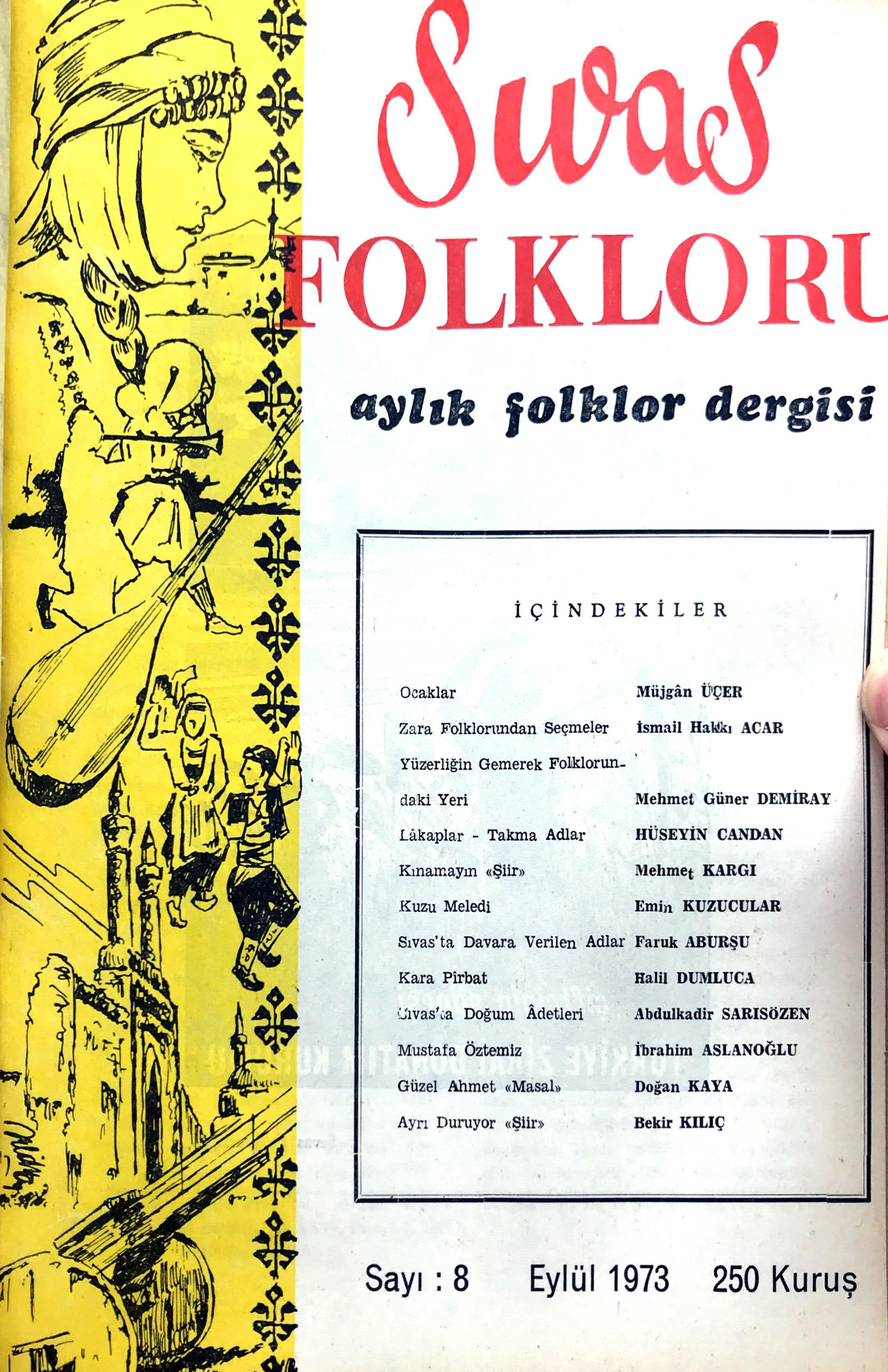 * Dergi Adı: Sivas Folkloru * Basım Tarihi: Eylül 1973 * Yıl: 1 * Sayı: 8 * Fiyat: 250 Kuruş * Derginin Sloganı: Aylık Folklor Dergisi * Arşivimizde Mevcut Mu? : Yok |