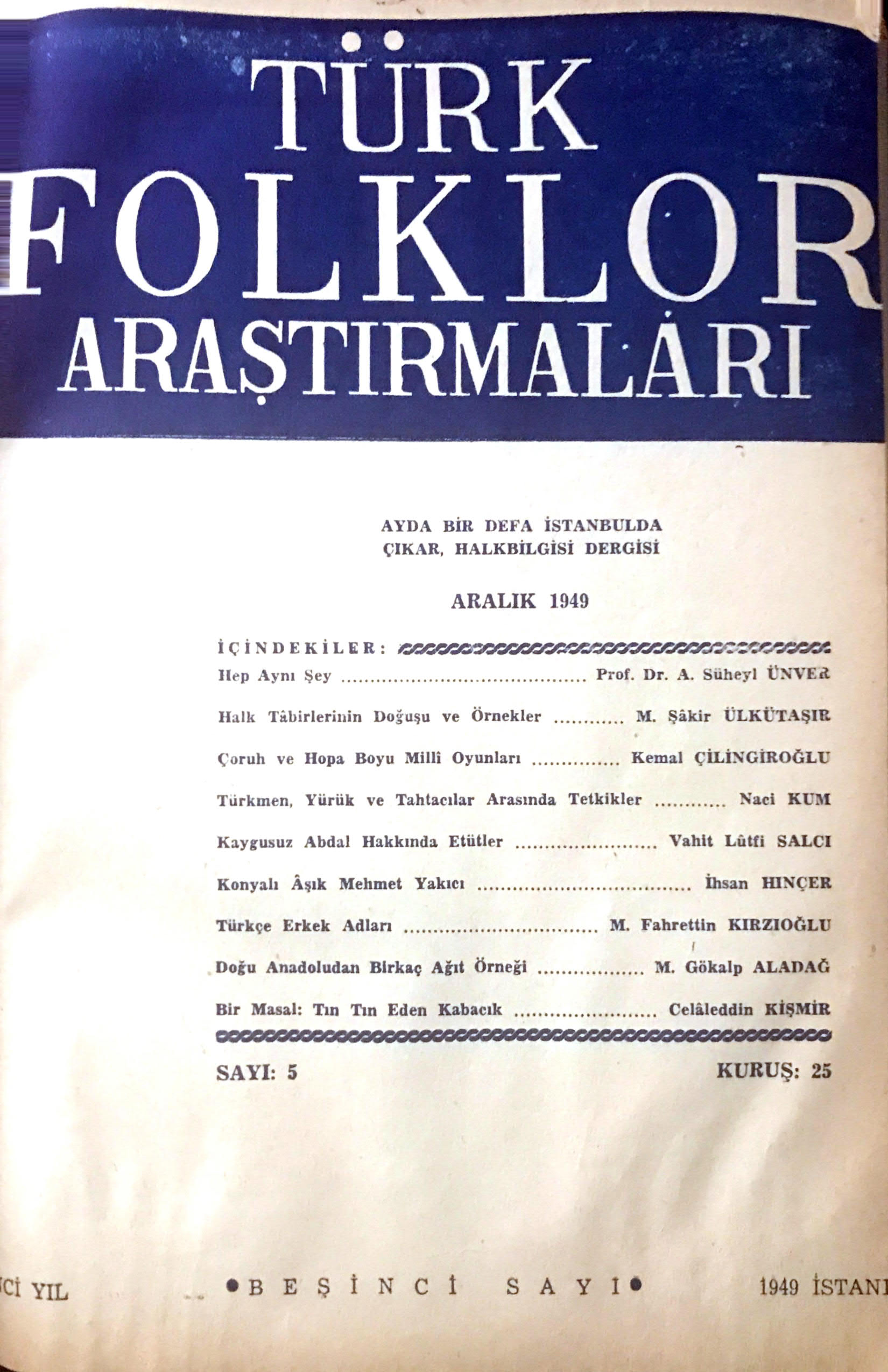 * Dergi Adı: Türk Folklor Araştırmaları Dergisi * Basım Tarihi: Aralık 1949 * Cilt: 1 * Yıl: 1 * Sayı: 5 * Arşivimizde Mevcut Mu? : Var |