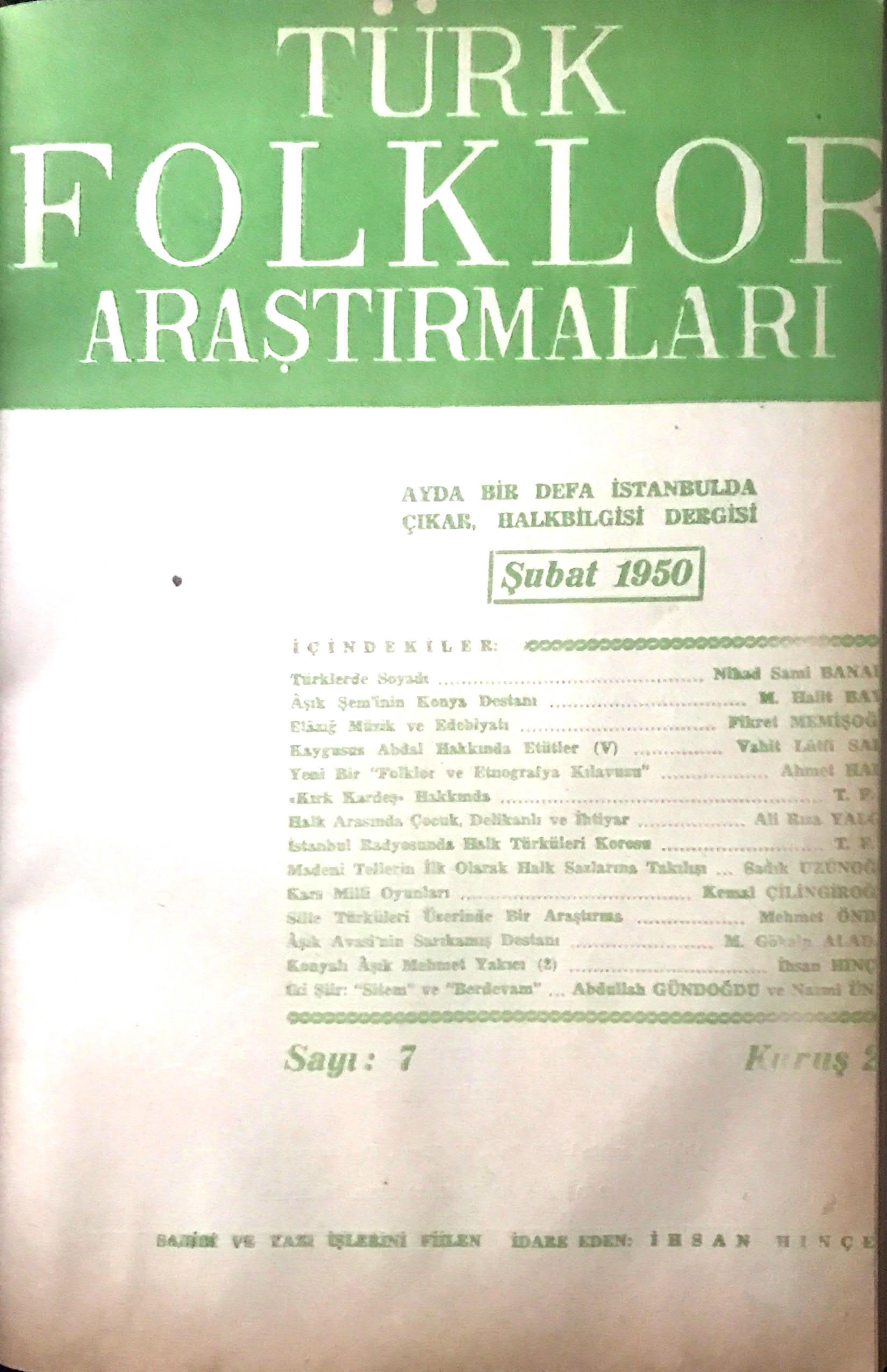 | İstanbul Radyosunda Halk Musikisi Yayımı ve Sadi Yaver Ataman | Anonim | 105 |