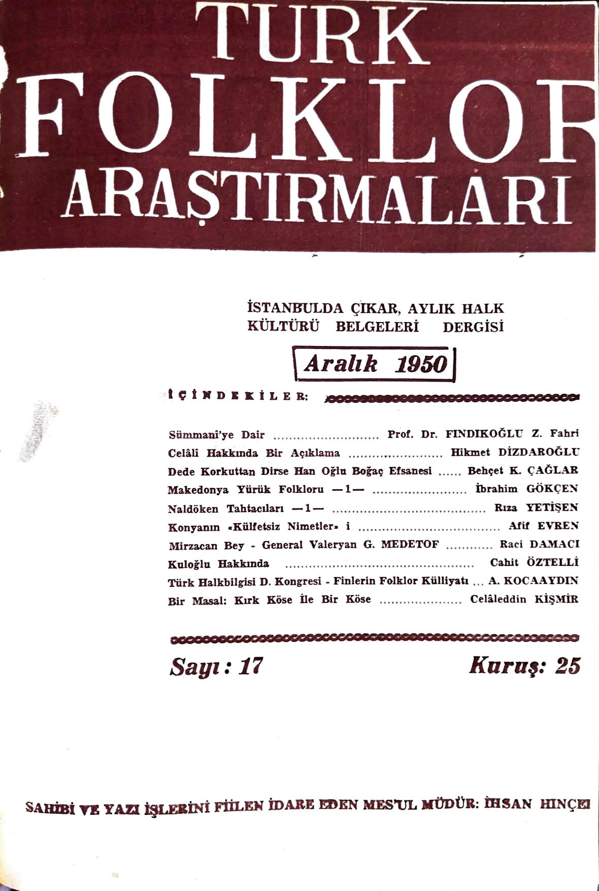 * Dergi Adı: Türk Folklor Araştırmaları Dergisi * Basım Tarihi: Aralık 1950 * Cilt: 1 * Yıl: 2 * Sayı: 17 * Arşivimizde Mevcut Mu? : Var |