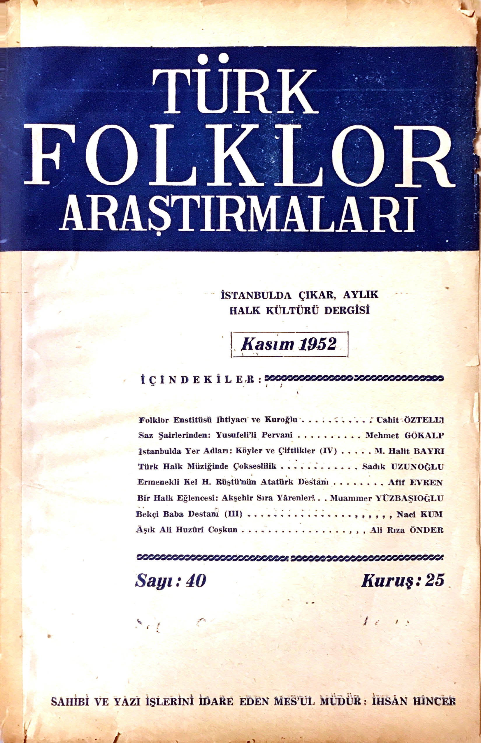 * Dergi Adı: Türk Folklor Araştırmaları Dergisi * Basım Tarihi: Kasım 1952 * Cilt: 2 * Yıl: 4 * Sayı: 40 * Arşivimizde Mevcut Mu? : Var |