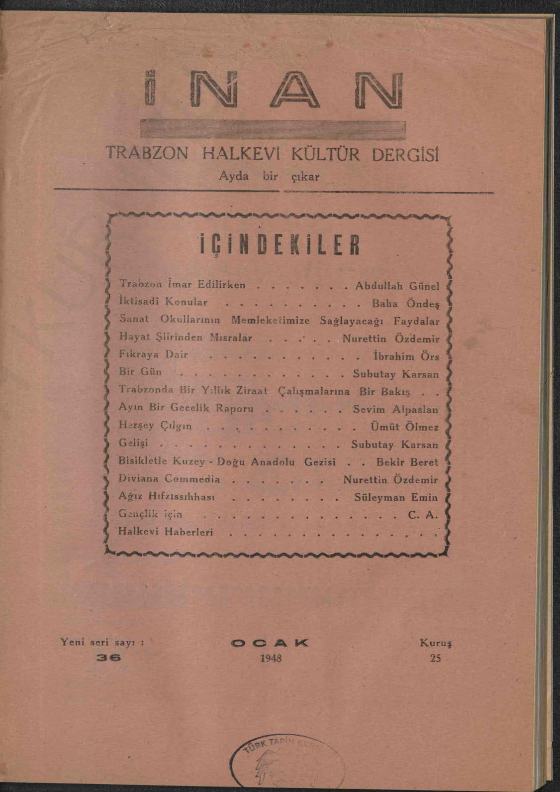 İnan - Yeni Seri (Trabzon Halkevi Dergisi)