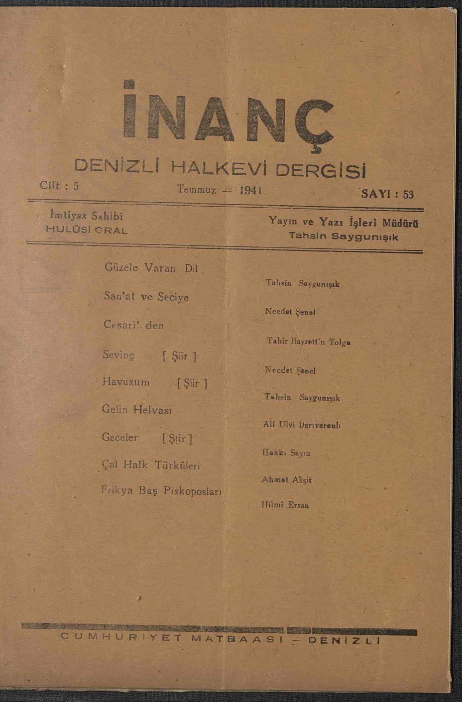 İnanç (Denizli Halkevi Dergisi)