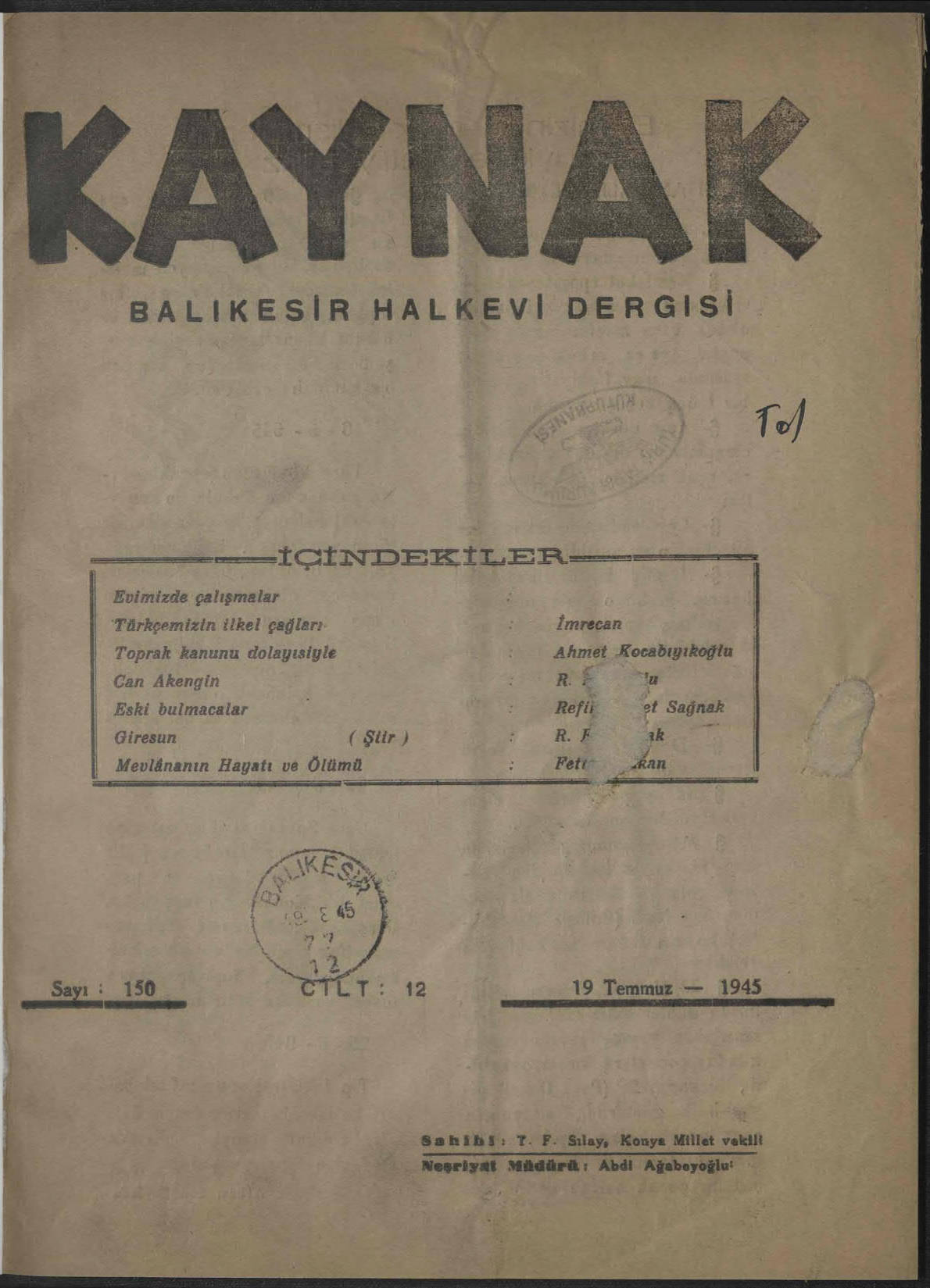 Kaynak (Balıkesir Halkevi Dergisi)