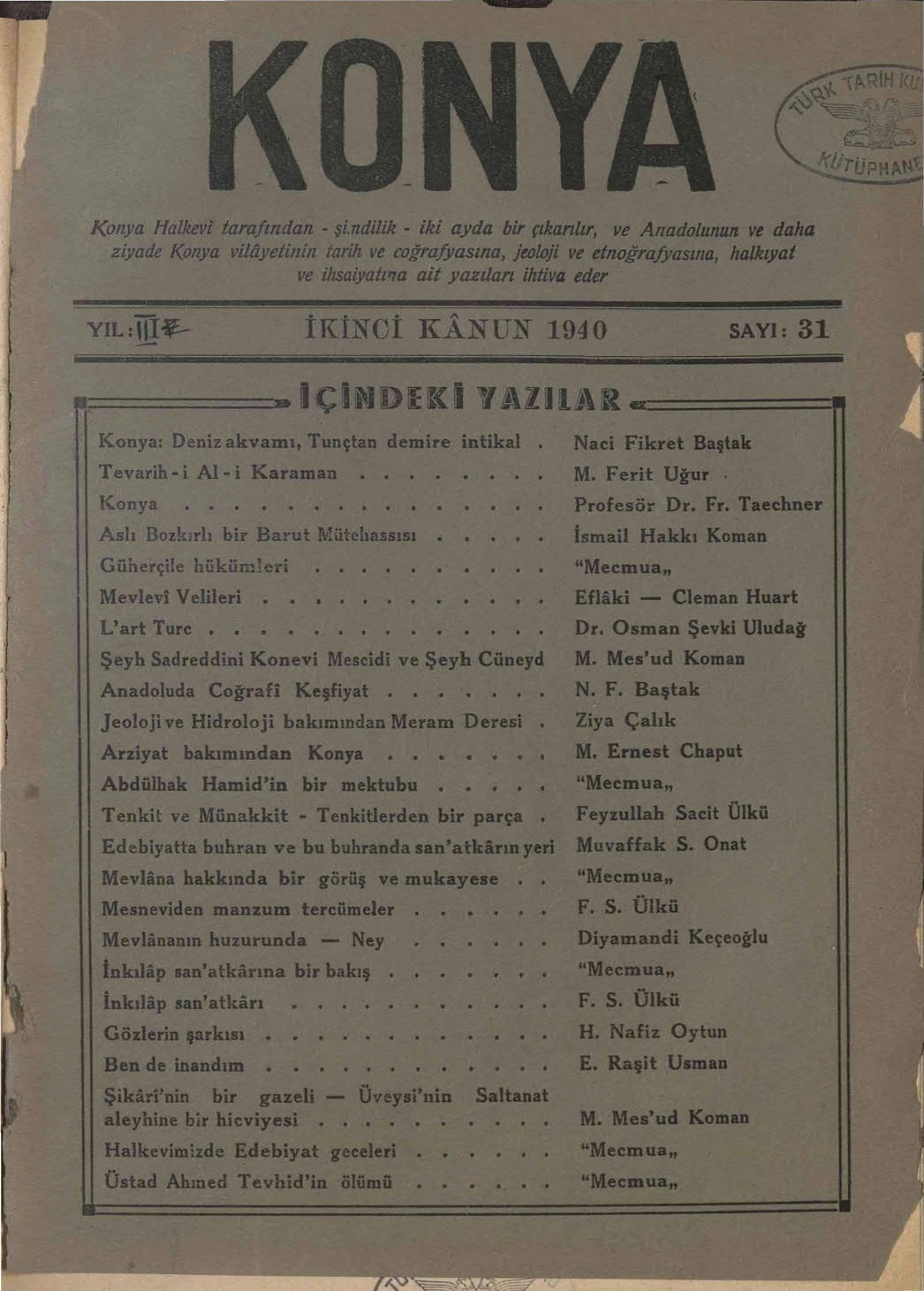 Konya (Konya Halkevi Dergisi)