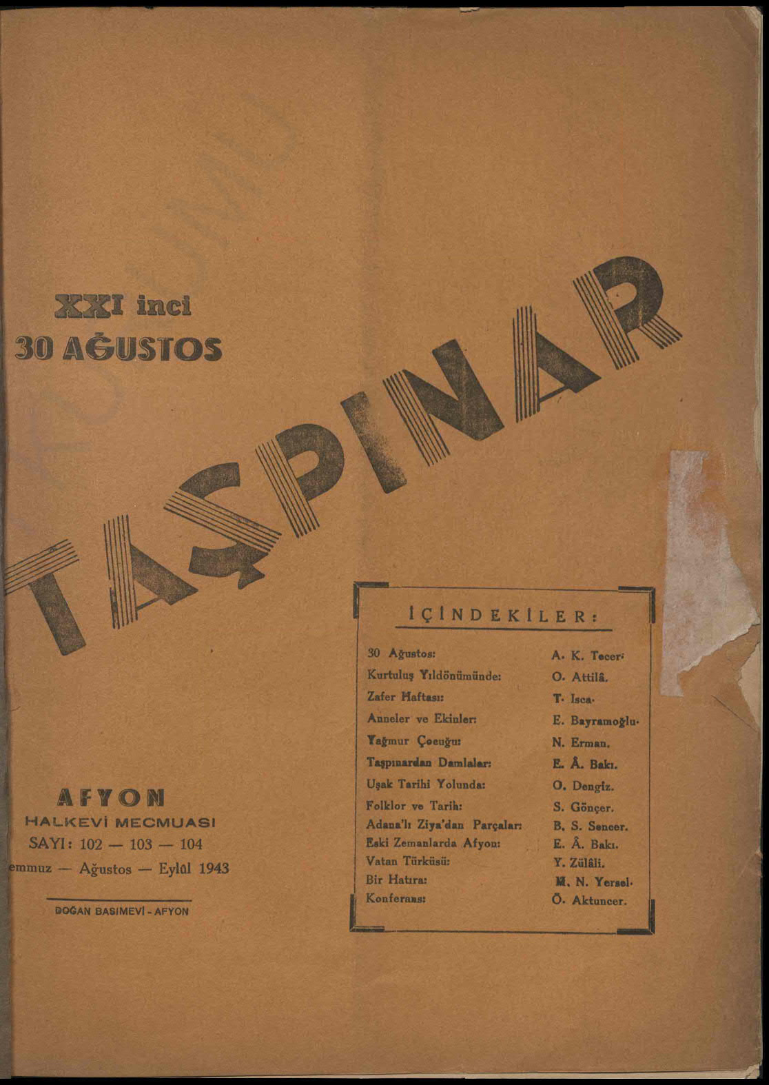Taşpınar (Afyonkarahisar Halkevi Dergisi)