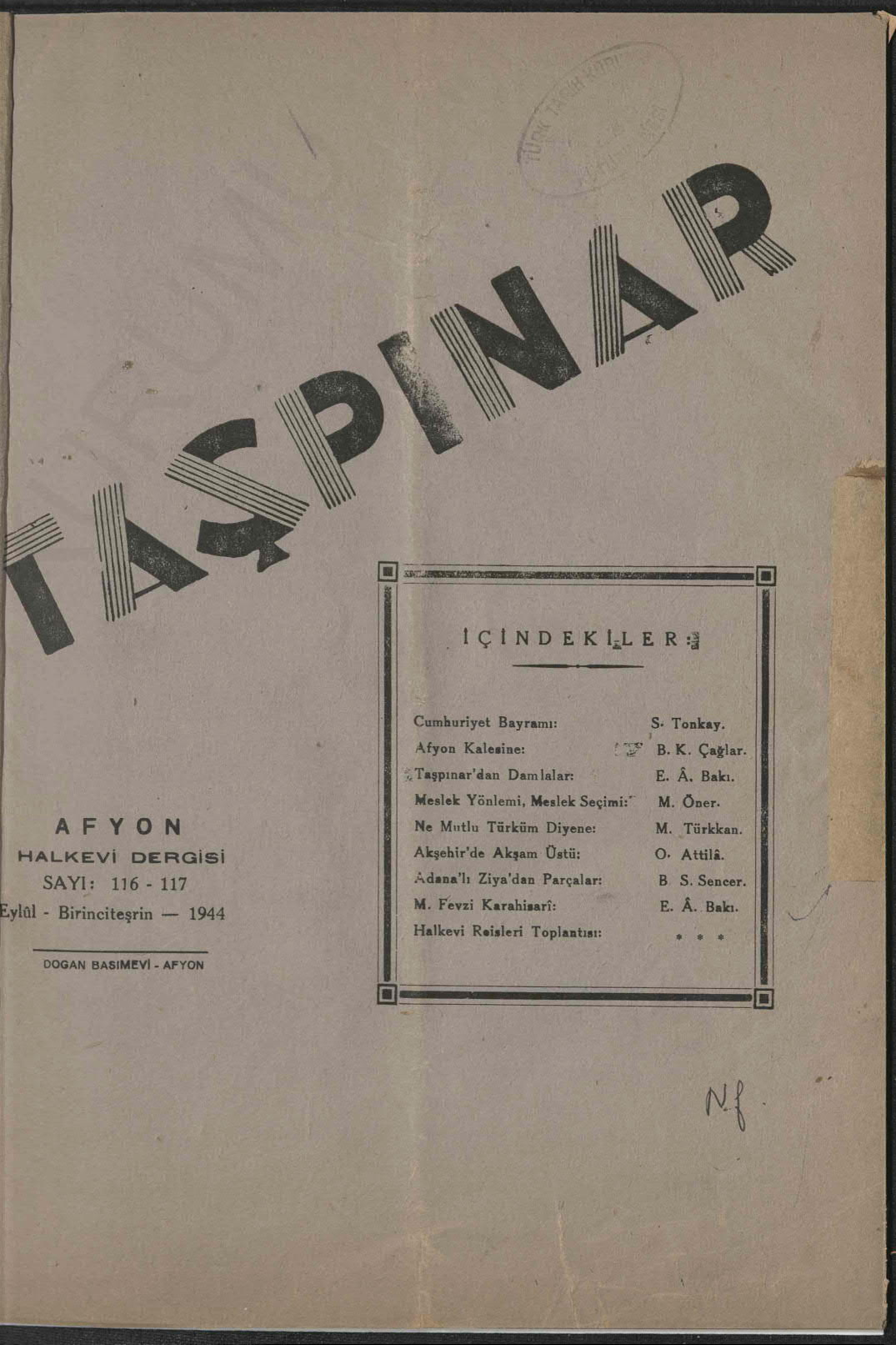 Taşpınar (Afyonkarahisar Halkevi Dergisi)