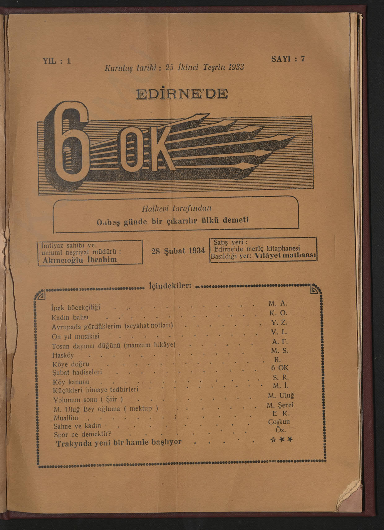 6 Ok (Edirne Halkevi Dergisi)