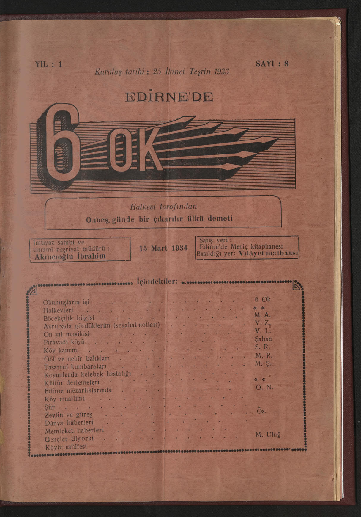 6 Ok (Edirne Halkevi Dergisi)
