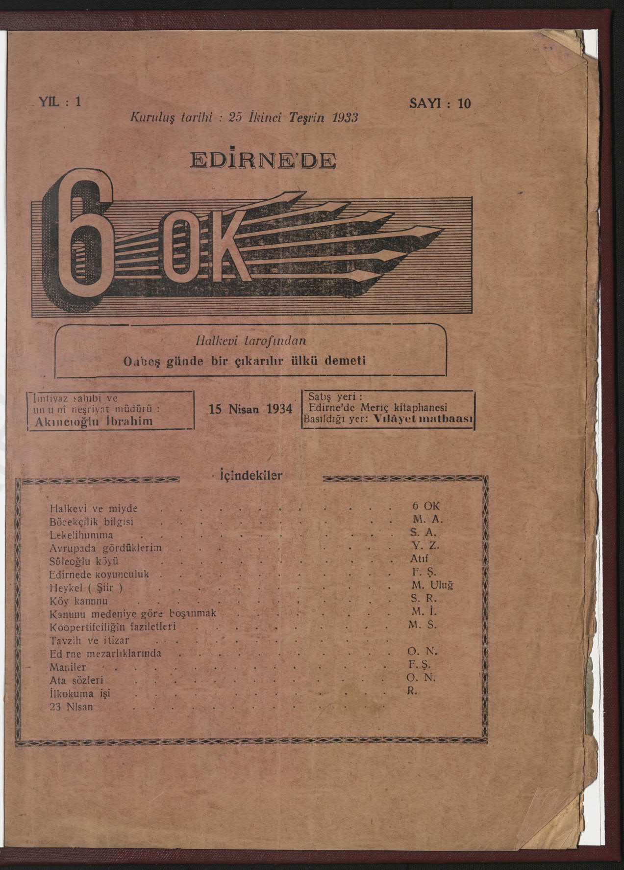 6 Ok (Edirne Halkevi Dergisi)