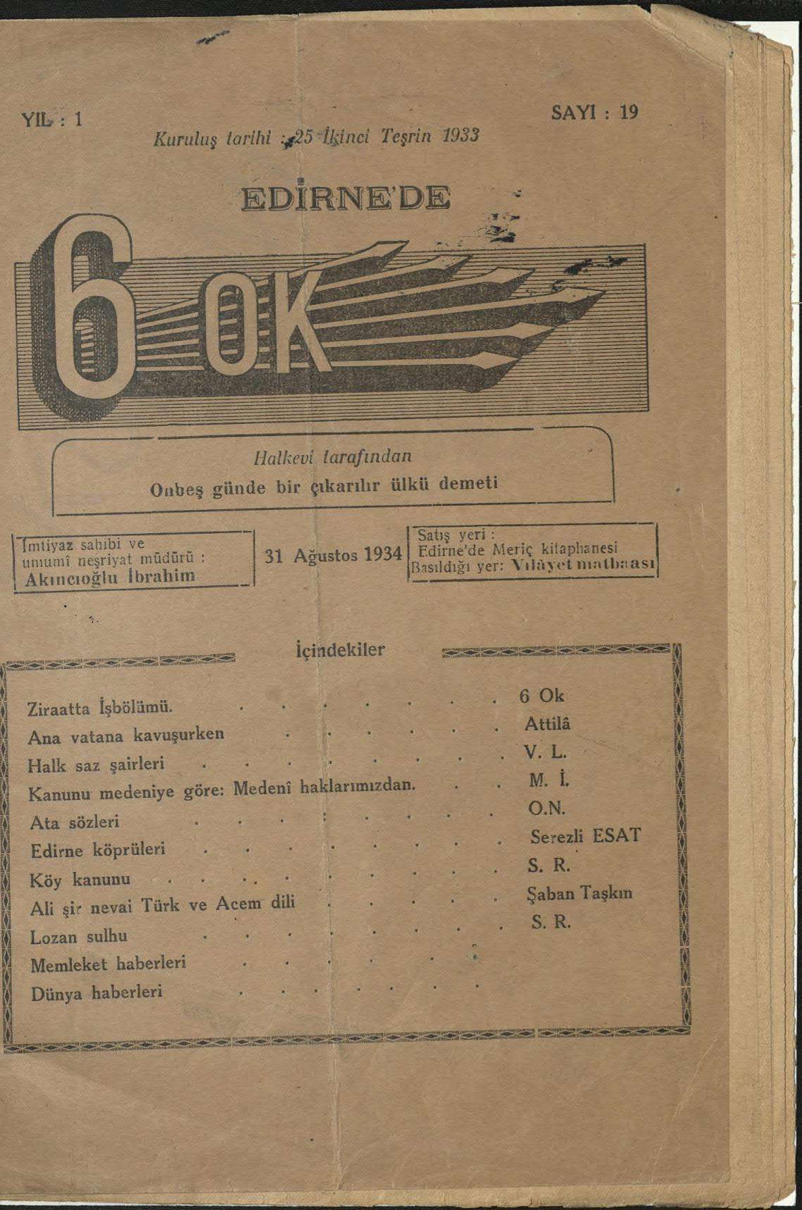 6 Ok (Edirne Halkevi Dergisi)